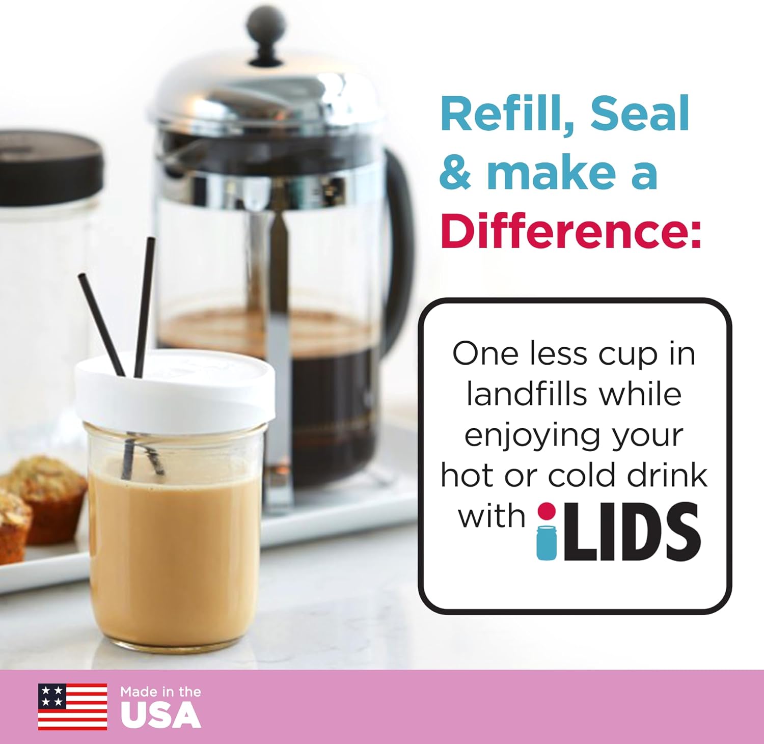 메이슨 항아리 음료 뚜껑 :이 음료 뚜껑에는 특별히 모양의 큰 개구부가있어 뚜껑에서 똑바로 마시거나 빨대를 사용할 수 있습니다. 뜨겁거나 차가운 음료, 집에서 또는 이동 중에 사용하십시오. 유출 저항성. 3.3/8 인치 직경의 넓은 입 항아리에 맞습니다.