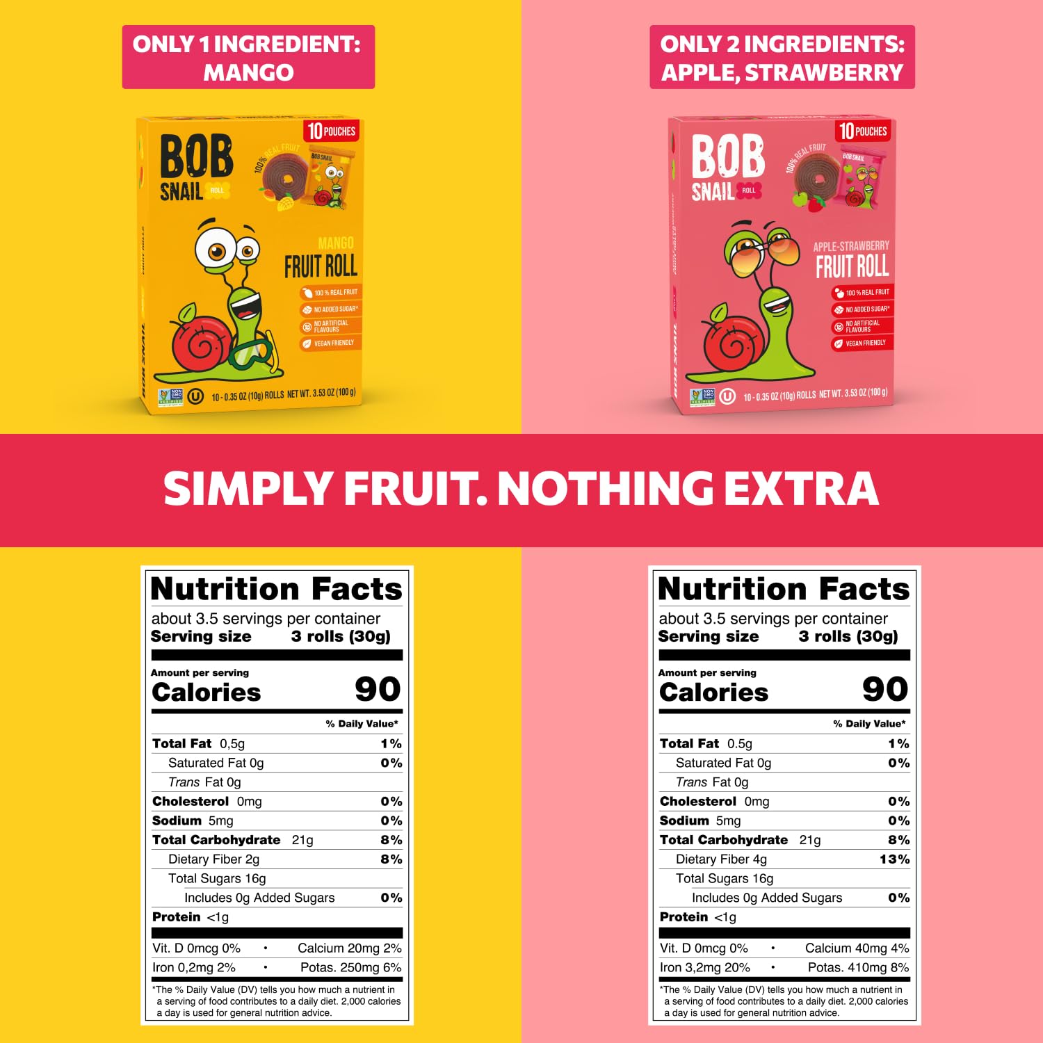 신뢰할 수 있는 깨끗한 성분 — 비건, 글루텐 프리, 비 GMO, 코셔, 설탕 무첨가. 전세계 가족들이 신뢰하는 유럽 브랜드 Bob Snail이 제작했습니다.