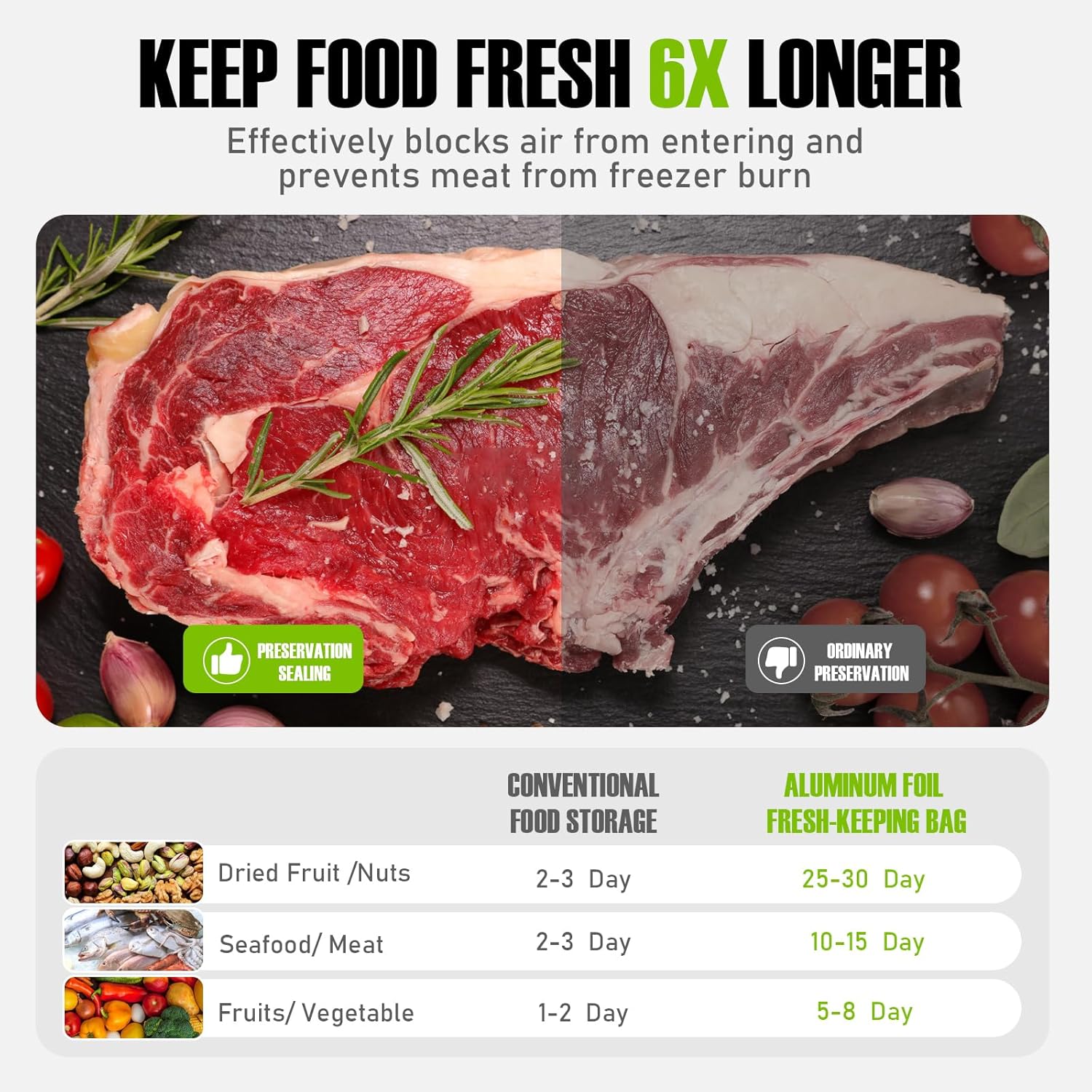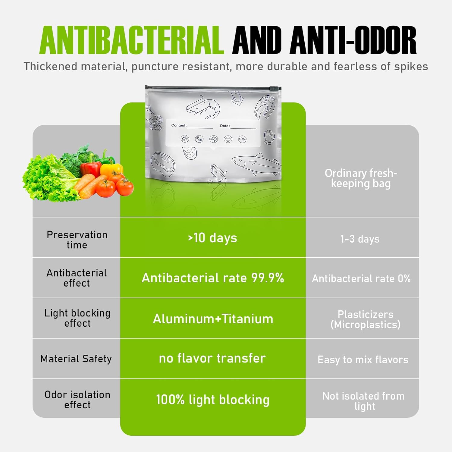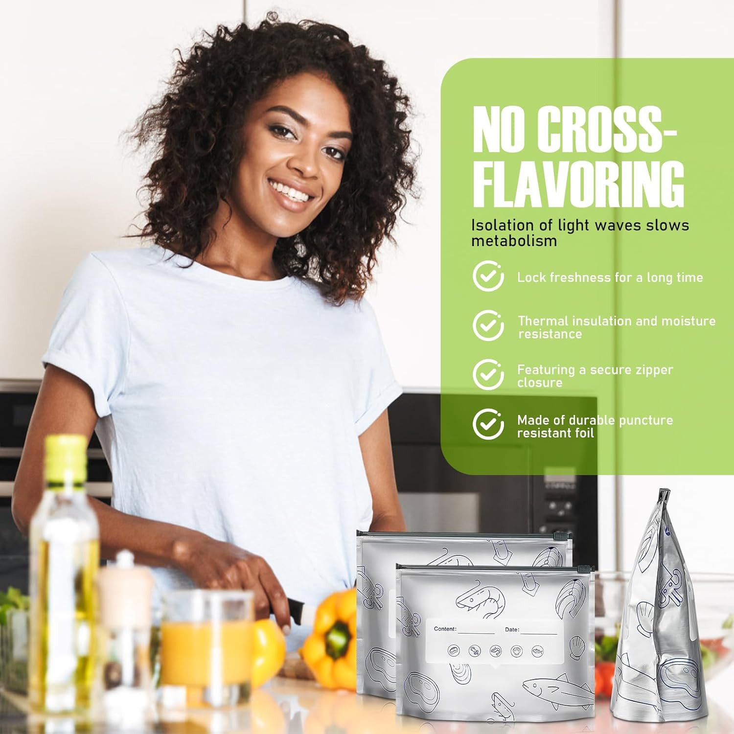【신선함을 유지하고 수분을 유지합니다】두꺼운 알루미늄 호일로 제작된 이 보관 가방은 뛰어난 단열 및 내습성을 제공하여 음식을 더 신선하고 오랫동안 유지합니다. 빛 차단 디자인으로 맛과 영양분 보존에 도움