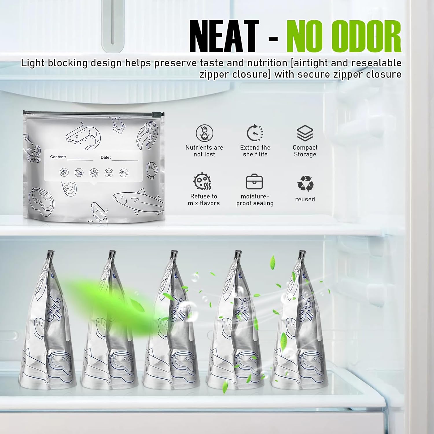 【무거운 내구성과 찢어짐 방지 소재】내구력이 뛰어난 천공 방지 포일로 제작된 이 백은 일상적인 사용을 견딜 수 있도록 제작되었으며 누출이나 파손 방지 기능이 있어 식료품 저장실 및 냉동고 보관에 이상적입니다.