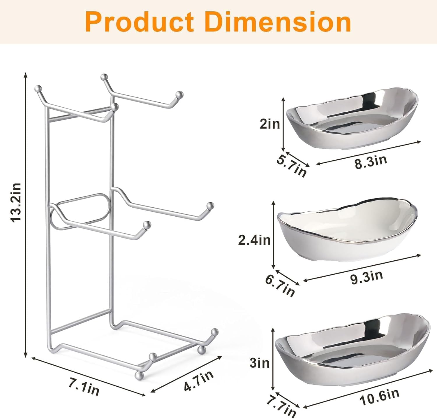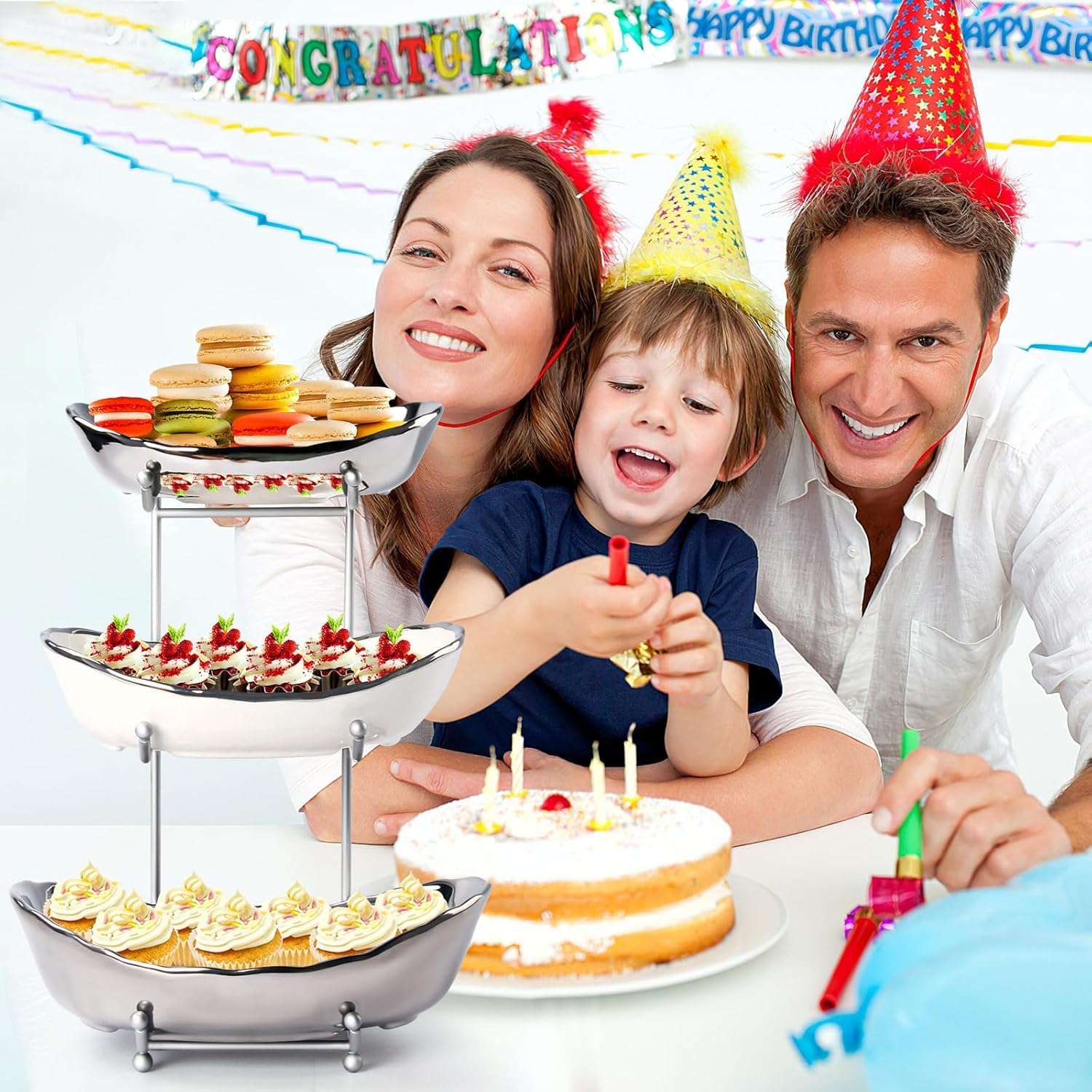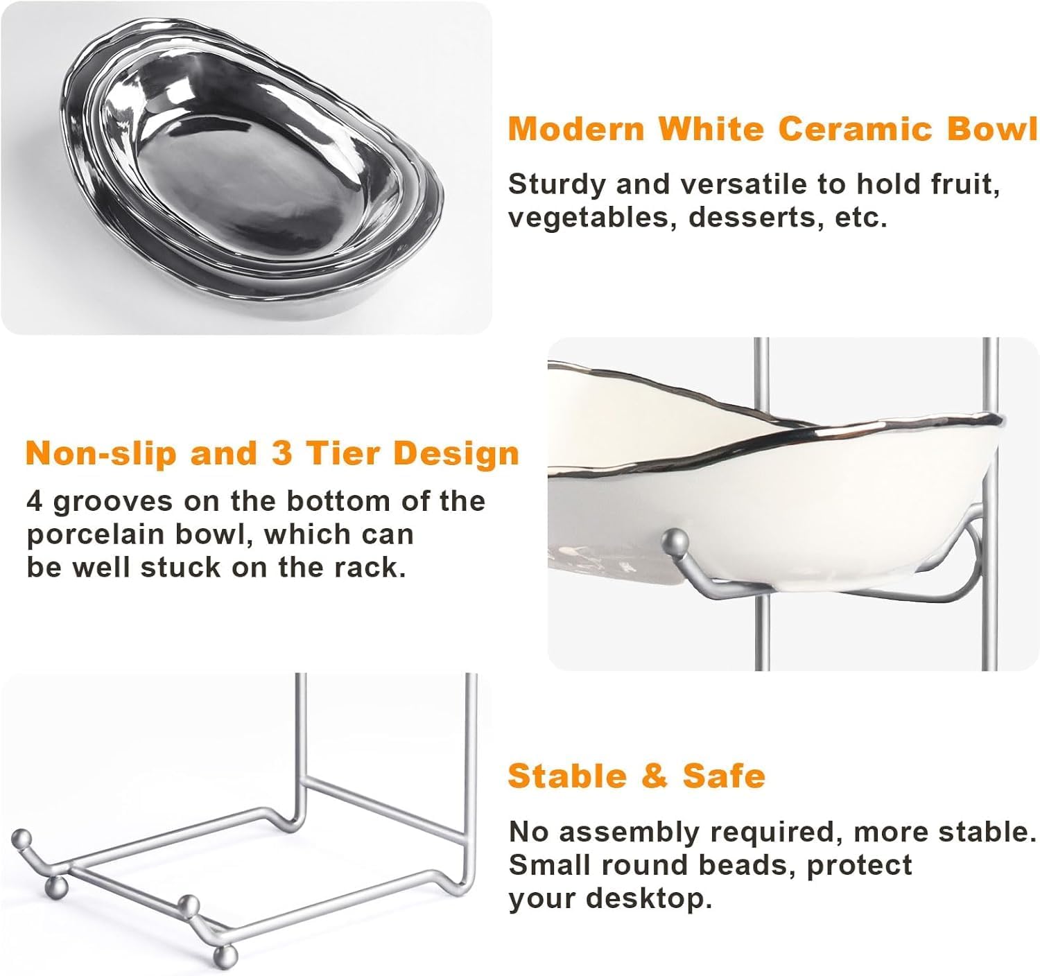 【3 계층 과일 보울】 금속 스탠드가있는 멋진 3 계층 과일 보울입니다. 하나의 세트에는 1 개의 큰 도자기 그릇 (10.4×7.5×2.8in), 1 개의 중간 도자기 그릇 (9.1×6.7×2.4in), 1 개의 작은 도자기 그릇 (8.3×5.7×2 in) 및 황금 금속 스탠드 (13.2×7.5×4.7 인치)가 포함됩니다.