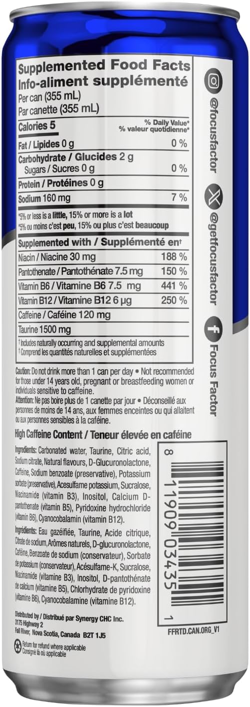 설탕이없고 저칼로리 : Focus Factor Focus + Energy Drink, 에너지 감정을 높이기 위해 설계된 설탕이없는 저칼로리 및 가볍게 탄산화 된 공식의 맛있는 액체 에너지 음료로 빠른 결과를 즐기십시오.