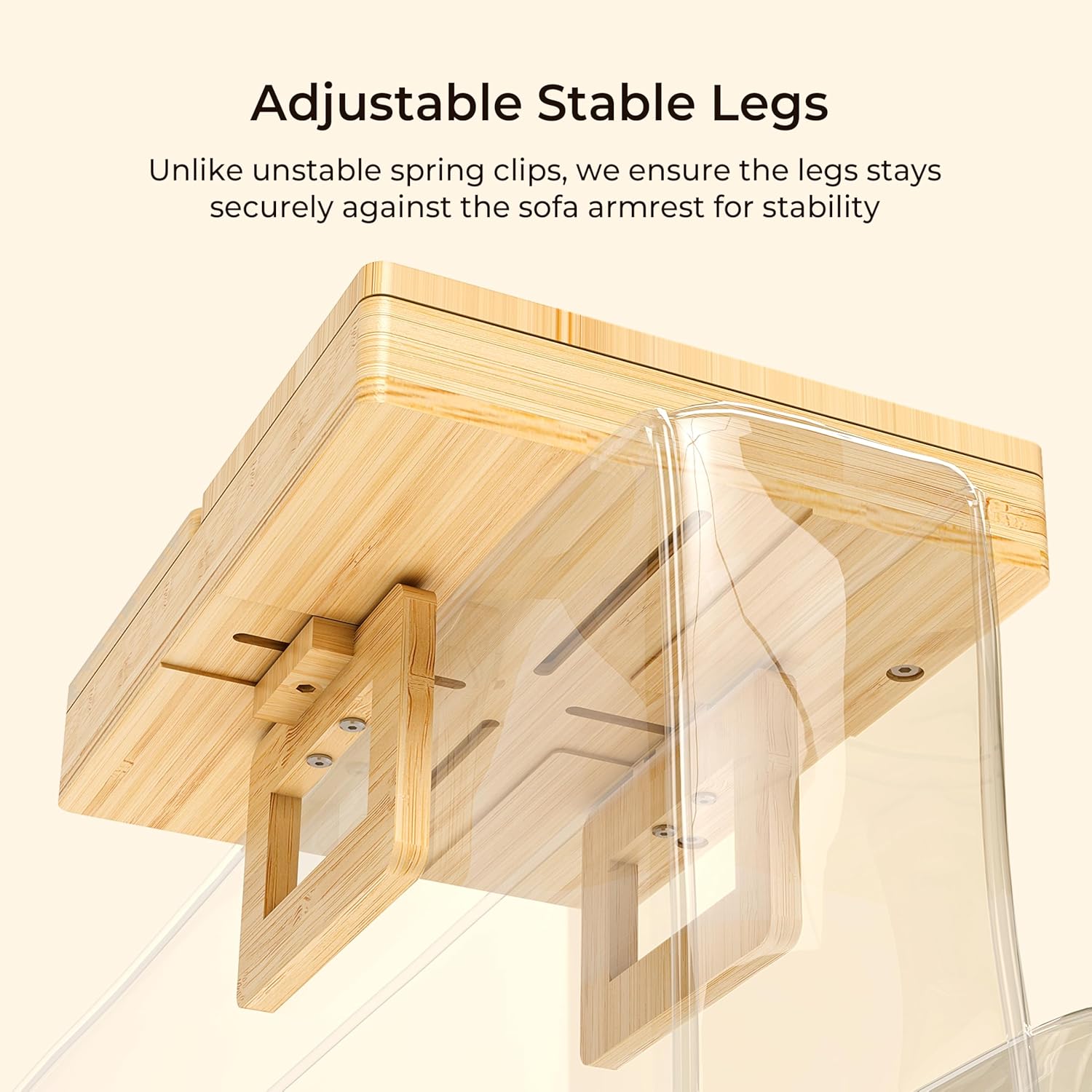 조절 가능한 안정 다리 : 시장에서 사용할 수있는 스프링 다리와 달리 소파 암 레스트 테이블에는 조절 가능한 다리가있어 소파 팔걸이의 너비에 따라 조정할 수 있습니다. 소파 테이블은 최대 10 인치 너비의 팔걸이를 지원합니다. 매우 안정적인 다리로 디자인을 업그레이드하십시오. 간식, 음료에 적합하며 아늑한 시간을 즐기십시오.