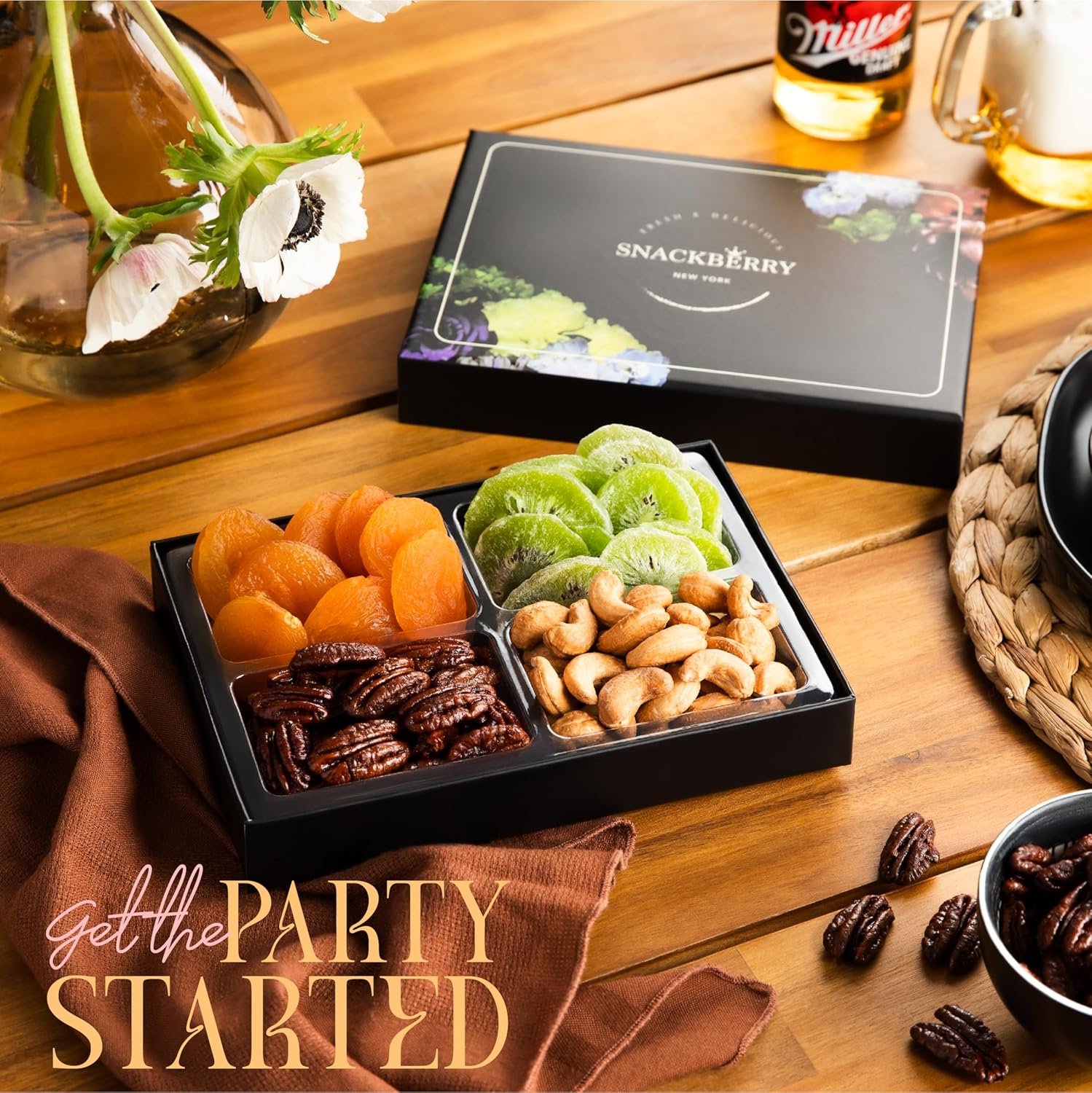 우리의 단면 파티 트레이는 건강한 음식으로 가득 차 있습니다. 뚜껑이 있는 트레이는 사용자의 편의를 위해 4개의 칸으로 나누어져 있습니다. 각 제품에는 프리미엄 제품군과 다른 군침이 도는 견과류가 포함되어 있습니다. 자신에게 선물하든, 사랑하는 사람에게든, 친구에게든 눈길을 사로잡는 이 최고급 음식 선물 바구니는 모든 축하 행사를 확실히 보완하고 향상시켜 줄 것입니다. 견과류와 말린 과일 플래터 선물에는 받는 사람에게 만족과 감동을 선사할 멋진 상자가 포함되어 있습니다. 아빠, 엄마, 여자친구, 생일을 축하하거나 단순히 “감사합니다”라고 말하든, 자신있게 선물하세요! 선물을 사는 것은 대개 스트레스를 많이 받습니다. 완벽한 선물을 찾았다고 생각하면 가격이 비쌉니다. 저렴한 제품을 찾으면 그다지 마음에 들지 않습니다. 다행스럽게도 우리의 견과류 및 건조 과일 선물 상자는 고급스럽고 저렴한 가격으로 여러분이 찾고 있던 바로 그 제품입니다!