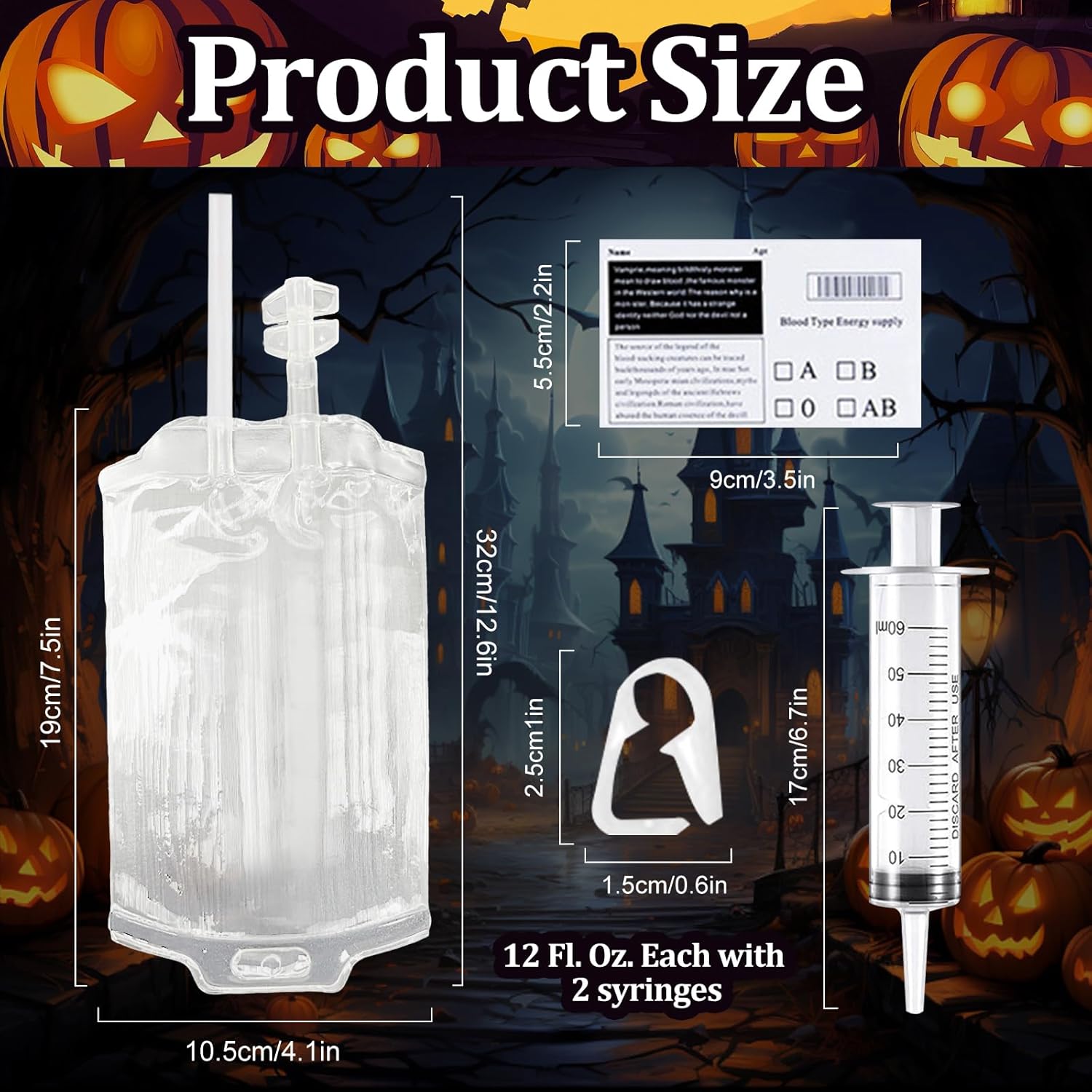 사용하기 쉽고 채우기 : 각 혈액 봉투에는 12 fl이 있습니다. 온스 용량과 쉽게 채우기 위해 2 개의 주사기가 제공됩니다. 나사 캡 설계는 누출 방지 경험을 보장하므로 유출이나 엉망없이 파티를 즐길 수 있습니다. 디자인에는 또한 쉬운 고리와 교수형을위한 바닥에 구멍이 포함되어 있습니다.