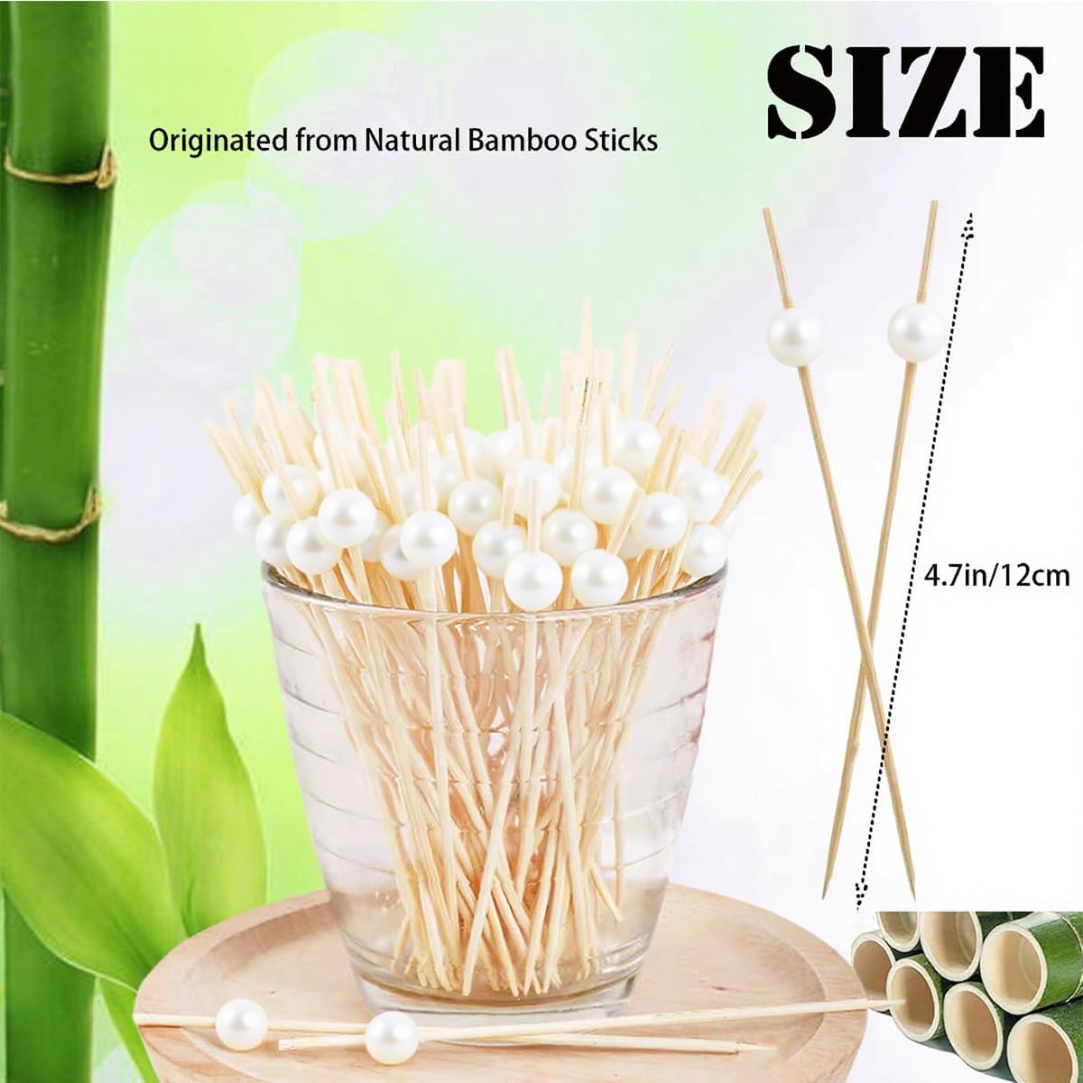 실용적인 선택 :이 세트에는 4.7 인치 흰색 진주 대나무 픽의 200 개가 포함되어 있으며 매일 요구 사항이나 파티 용품에 많은 도움이됩니다. 전통적인 칵테일 픽과 비교할 때 꼬치는 길고 두껍기 때문에 음식을 쉽게 뚫을 수 있습니다.