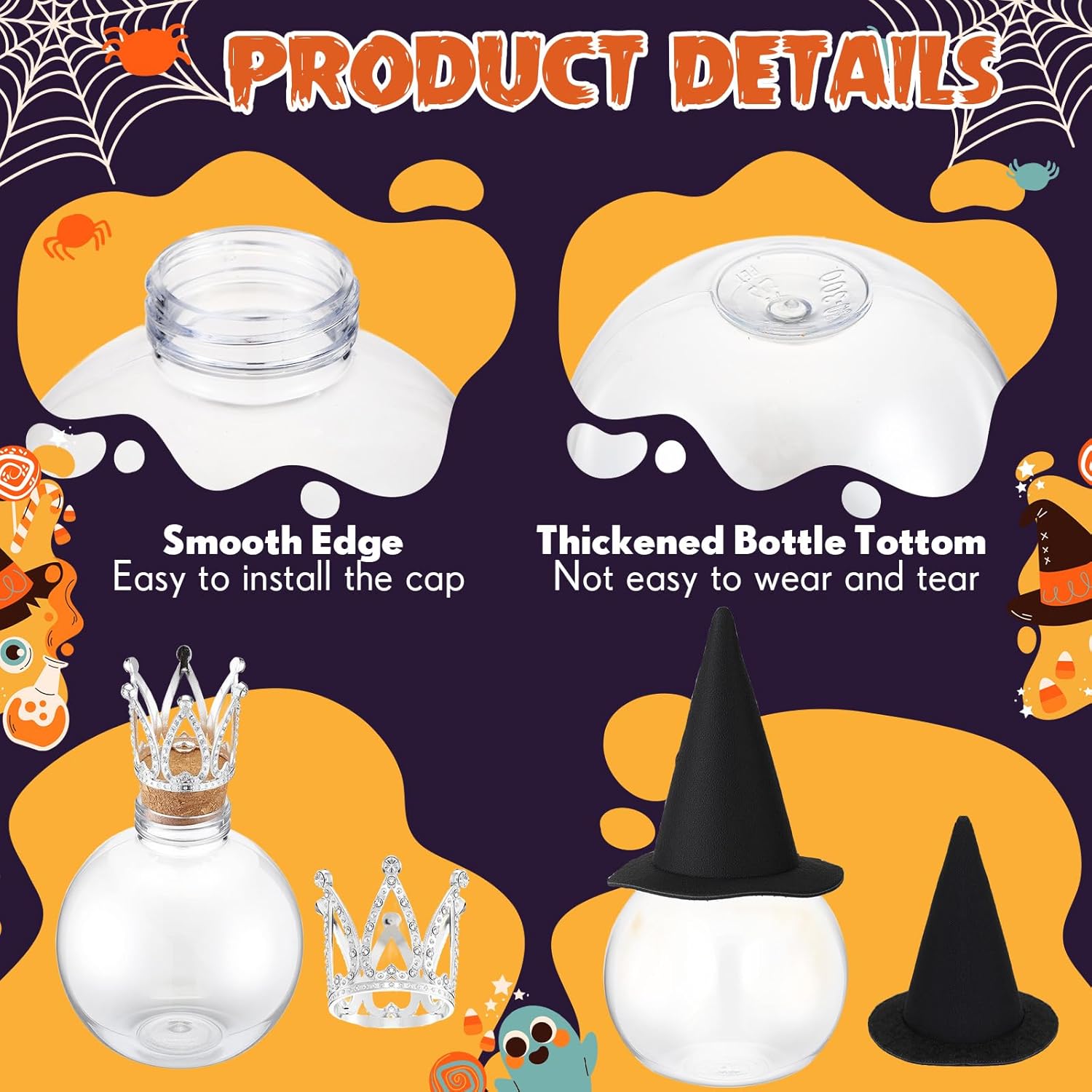 패키지 포함 : 브라운 코르크 스토퍼가있는 12 개의 PC 라운드 플라스틱 물약 병, 6 개 PC 펠트 미니 마녀 모자 및 6 개 PCS 미니 크라운; 이 세트는 스릴있는 할로윈 분위기와 잘 어울릴 수 있으며 할로윈에 이상적인 조합입니다.