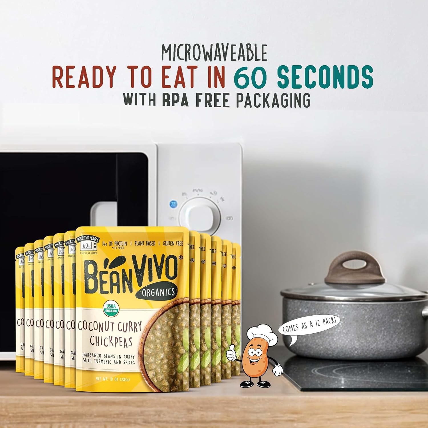 편리하게 포장된 채식 식사 – 사랑하는 사람들을 위해 BeanVIVO Spicy Beans를 가져가세요. 실용적이고 준비하기 쉽습니다. 코코넛 카레 한 봉지를 스토브에 데우거나 전자레인지에 돌리기만 하면 됩니다.
