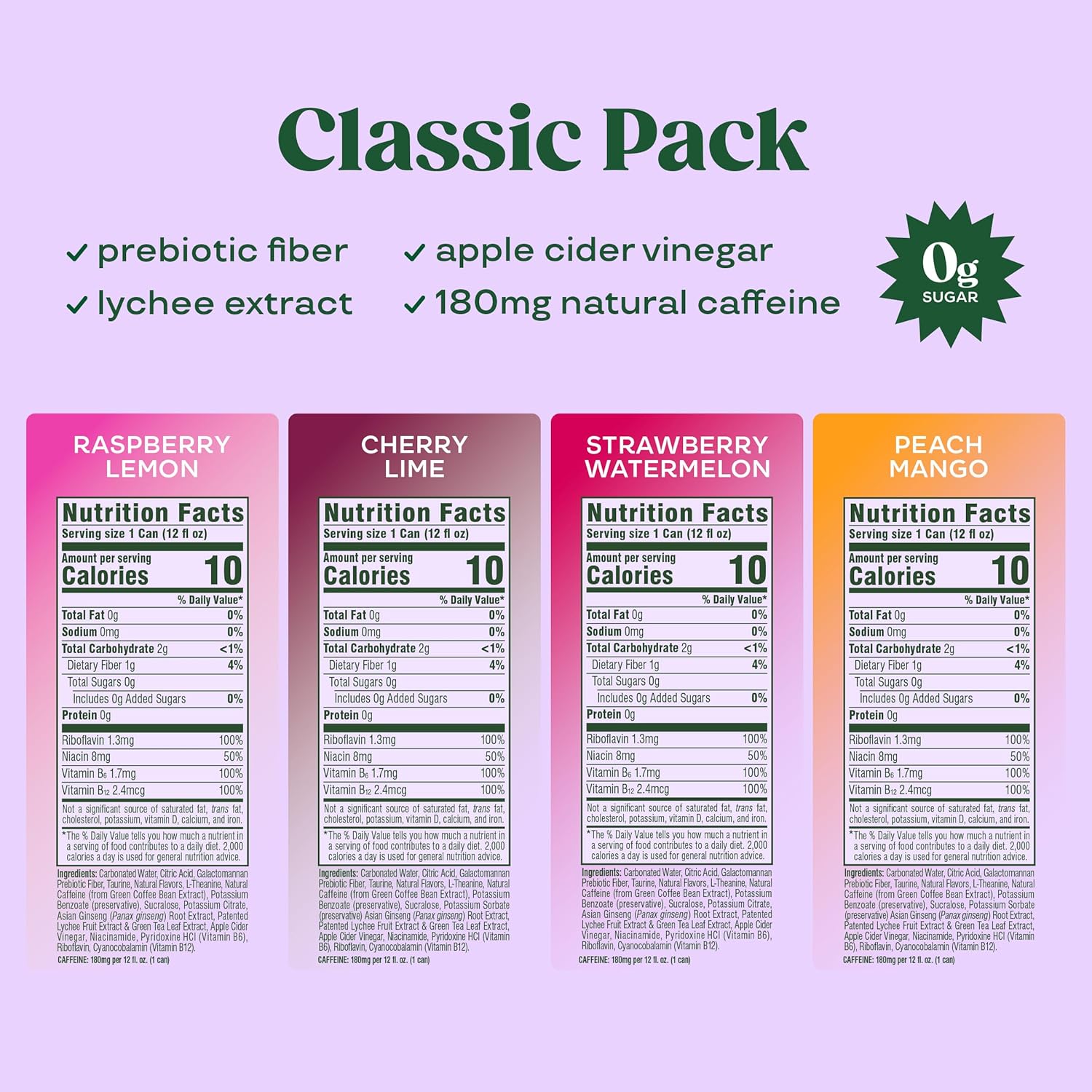 무설탕, 천연 카페인, 프리바이오틱스 및 리치 각 10칼로리는 에너지를 증가시키고 신진대사를 촉진하며 정신 집중을 촉진할 수 있습니다.