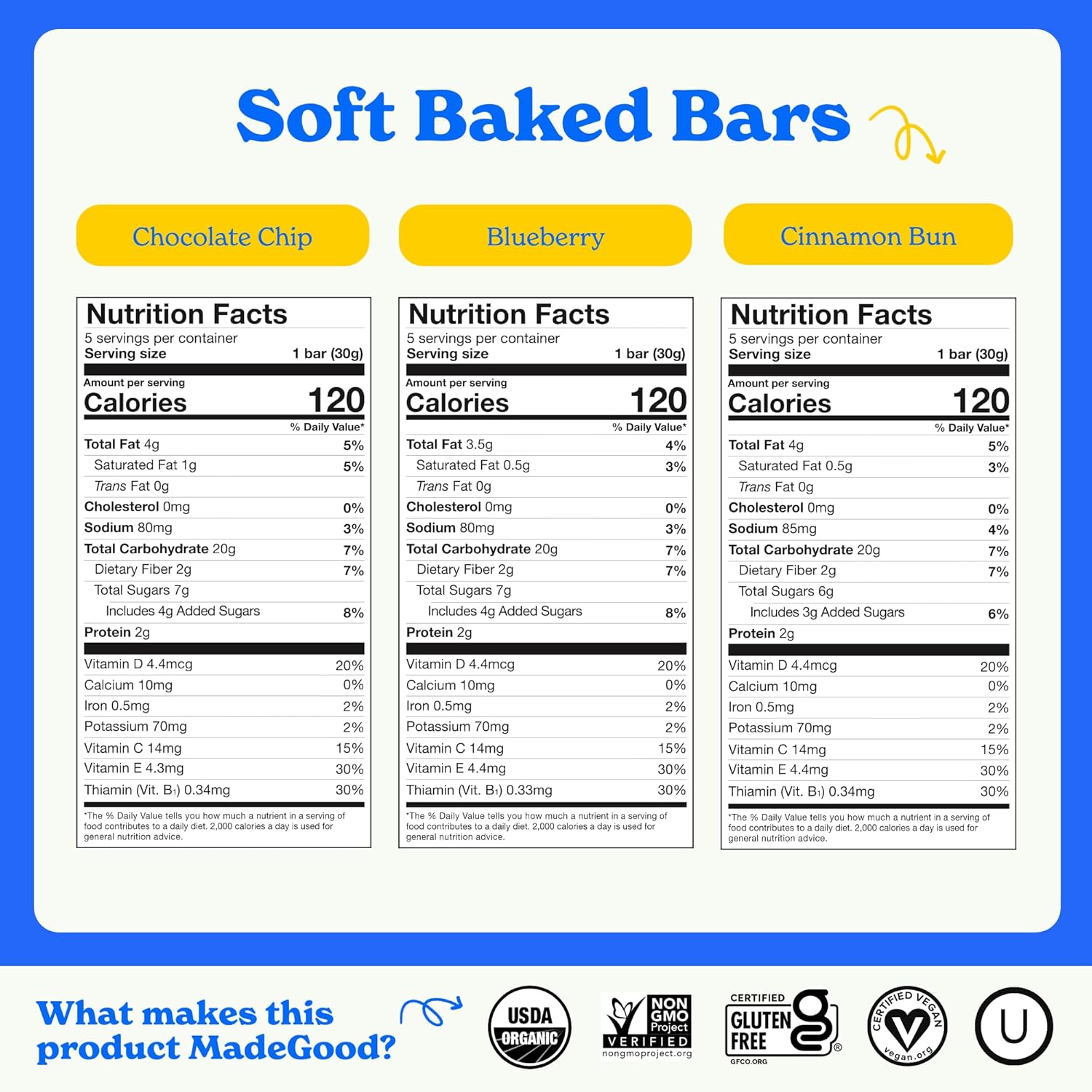 중앙 성분 : Madegood 모닝 바는 건강한 성분과 6 개의 다른 야채 추출물로 만든 유기농 연질 구운 오트밀에 의해 인증되었습니다. 생산적인 아침을위한 완벽한 아침 식사.