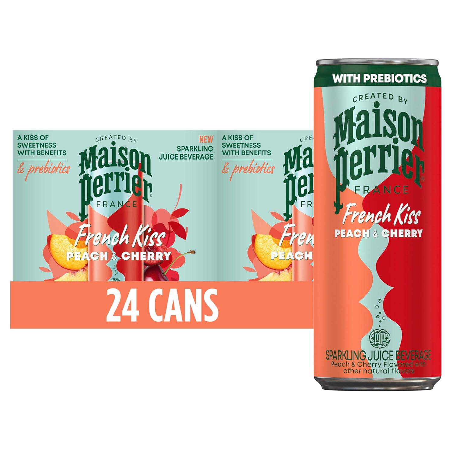 파리에서 열정을 담아 제작하고 햇살 가득한 프랑스 남부에서 사랑을 담아 만든 프렌치 키스(French Kiss)는 실제 과일 주스와 진정한 사랑의 조화를 이루는 스파클링 음료입니다. 각 모금은 유쾌한 거품, 육즙이 풍부한 맛, 캔당 40칼로리의 프리바이오틱 섬유 6g을 제공합니다. 한낮의 여유로움에 이상적인 프렌치 키스는 대담한 거품, 육즙이 풍부한 맛, 부드러운 달콤함의 키스를 제공합니다. 바쁜 오후에 딱 맞는 상쾌한 한낮의 재충전입니다. Maison Perrier 피치 체리 탄산수는 프랑스식 세련미를 더해 일상의 마시는 맛을 한층 더 높여줍니다. 휴식을 취하고 잠시 멈췄을 때 기분 좋은 기분을 느낄 수 있도록 도와줍니다.