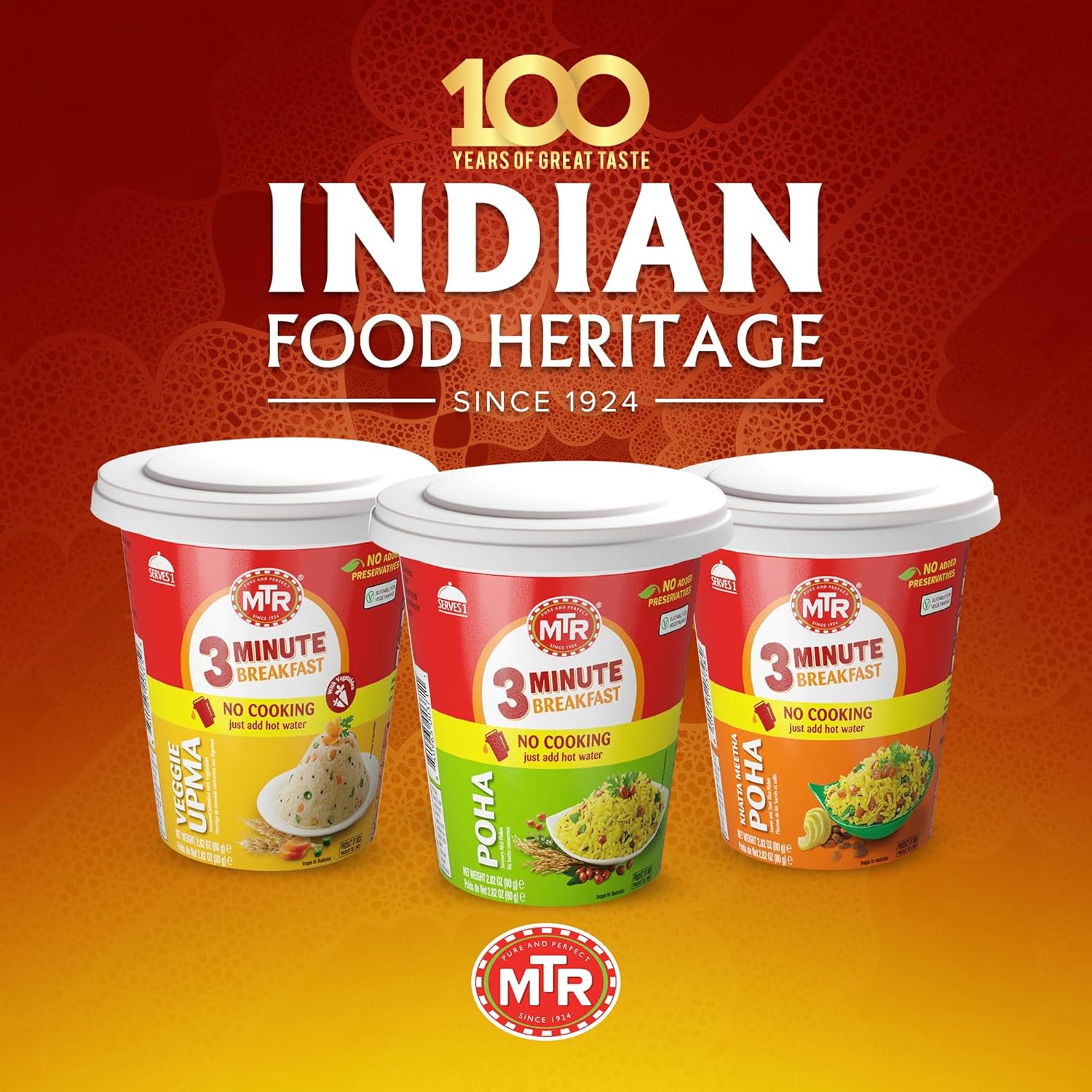 인공 색상, 풍미 또는 방부제는 없습니다. MTR -OV 3 분 아침 식사는 인공 색상, 취향 또는 방부제없이 만들어집니다. 선택된 양질의 재료로 만든 깨끗하고 정통한 식사를 즐기십시오.