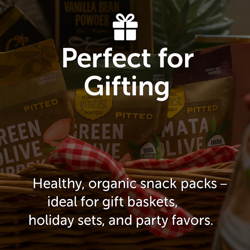 직접 고른 유기농 그리스 올리브 – 그리스산 최고 품질의 그린 올리브를 신중하게 손으로 골라 바로 섭취할 수 있는 맛있는 지중해 간식으로 준비했습니다. USDA 유기농, 순수한 재료, 정통 맛.