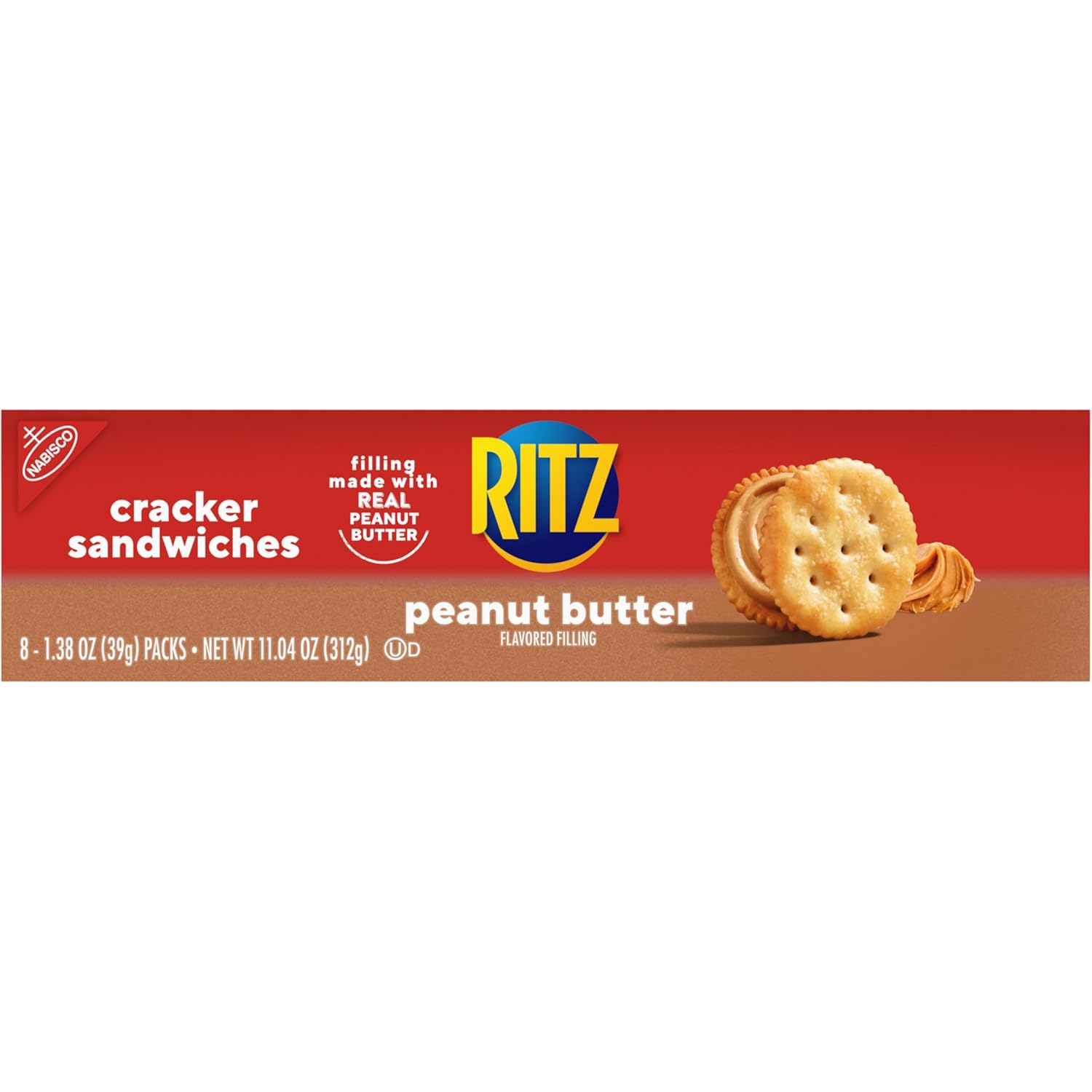 RITZ 땅콩 버터 샌드위치 크래커는 두 개의 바삭바삭한 RITZ 원형 크래커 사이에 땅콩버터 스프레드가 샌드위치되어 있어 어린이와 어른 모두가 오랫동안 사랑해 온 클래식 간식입니다. 진짜 땅콩버터를 사용해 속이 부드럽고 매혹적입니다. 신선함과 휴대성을 위해 개별 포장된 이 땅콩 버터 크래커는 식료품 저장실의 스낵 선반에 훌륭한 추가품입니다. 이 한 끼 간식을 점심 식사에 넣어 특별한 간식으로 먹거나 책상 서랍에 넣어두어 편리하게 사무실 간식을 즐겨보세요. RITZ Crackers Snacks의 개별 팩은 여행, 하이킹 및 기타 야외 모험을 위한 편리한 스낵이기도 합니다. 개별 포장된 각 패키지에는 크래커 샌드위치 6개가 들어 있습니다.