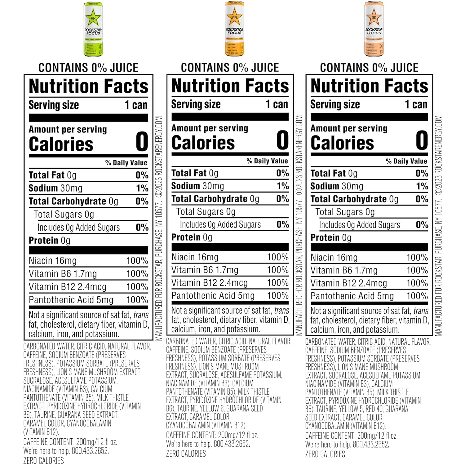제로 설탕 및 제로 칼로리 : Rockstar Focus Energy Drink는 모든 맛, 죄책감