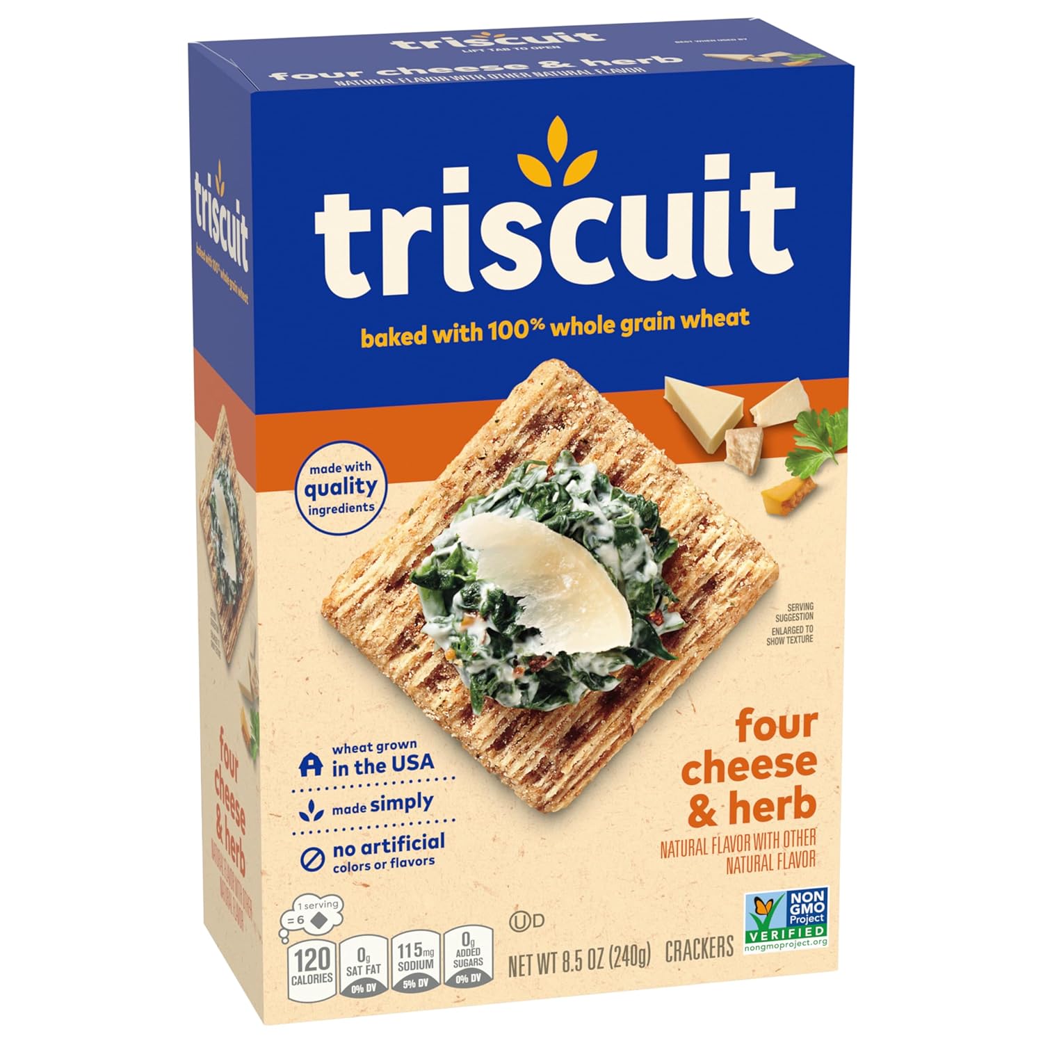 Triscuit 곡물 밀 크래커로 가득 찬 4 개의 치즈와 식물은 단순히 양질의 재료로 만들어집니다. 완벽하게 구운이 스낵 크래커는 미국 -U 해바라기 오일에서 자랑스럽게 자란 100% 통밀 곡물을 사용합니다. 정사각형 간식이있는 크래커는 만족스러운 부스러기를 위해 직물 질감으로 만들어집니다. 4 개의 치즈 크래커와 트리 스킷 식물은 인공 색상이나 취향없이 만들어진 비 GMO 프로젝트이며, 맛있는 친절을위한 좋은식이 섬유 (지방 함량에 대한 영양 정보 참조)의 좋은 공급원입니다. 좋아하는 치즈, 과일 또는 방향족 스프레드 로이 맛있는 크래커의 부스러기를 즐기십시오. 트리 스킷 크래커 스낵은 어린이, 성인 간식 또는 여행 간식을위한 간식이 필요한 모든 좁은 요구를 다룹니다. 좋아하는 치즈, 고기, 과일 및 채소가 장착 된 트리 스이트 크래커와 함께 맛있는 Charcuterie 보드를 만들어 파티 에서이 그룹 크래커를 제공하십시오.