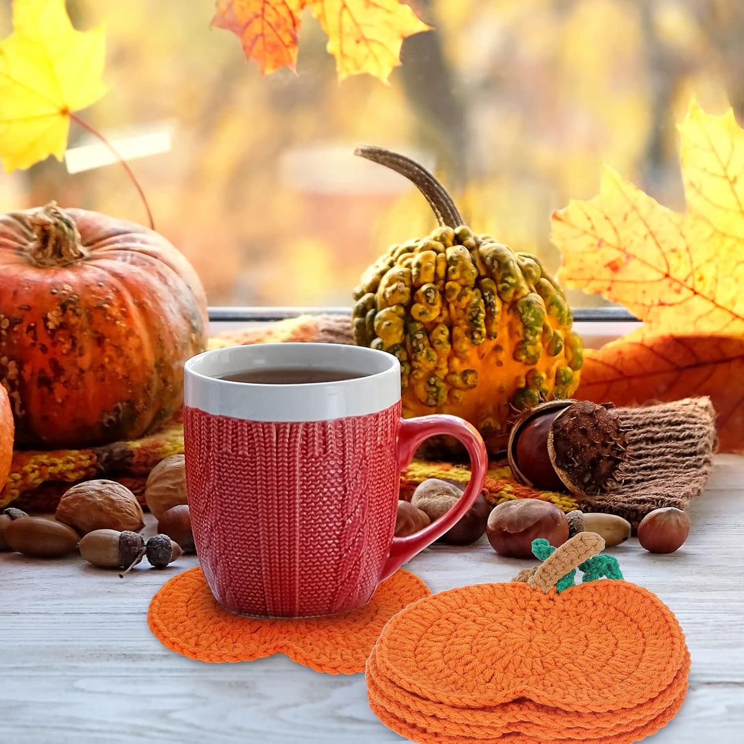 좋은 재료 – 우리의 호박 코스터는 아크릴 원사 재료로 만들어졌으며 안전하고 냄새가없고 부드럽고 편안하며 안티 슬립 및 내열성이있어 열과 차갑고 매우 실용적으로 테이블을 보호 할 수 있습니다. 알아채다